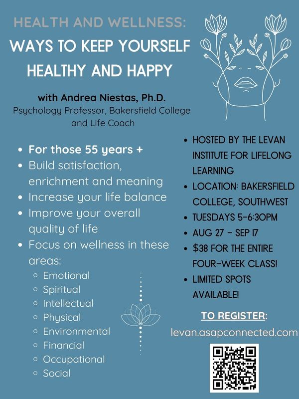 I am happy to announce that I will begin teaching classes in Fall 2025 with the Levan Institute for individuals 55 years and older! All classes are focused on wellness and have limited spots available!